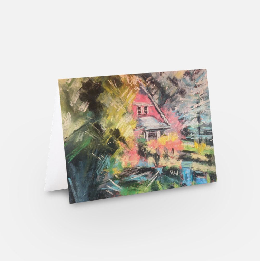 Almost famous like Big Pink, but a beautiful house on its own. 4.6" x 7.2". Three Blank Note Cards come with matching white envelopes in a resealable plastic bag. Artwork from a pastel painting I did.